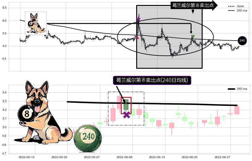 ⚀ 2022-06-02-日显现 葛兰威尔均线 240日均线 第⑧卖出点 下降趋势的中继信号,后市看跌,卖出信号