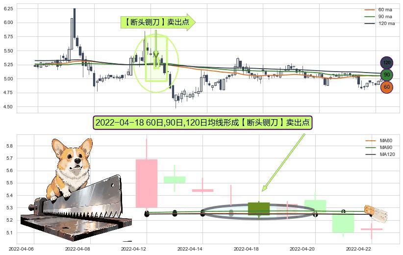 ⚀ 2022-04-18日显现 60日-90日-120日均线 【断头铡刀】卖出点 看空信号,后市看跌,卖出