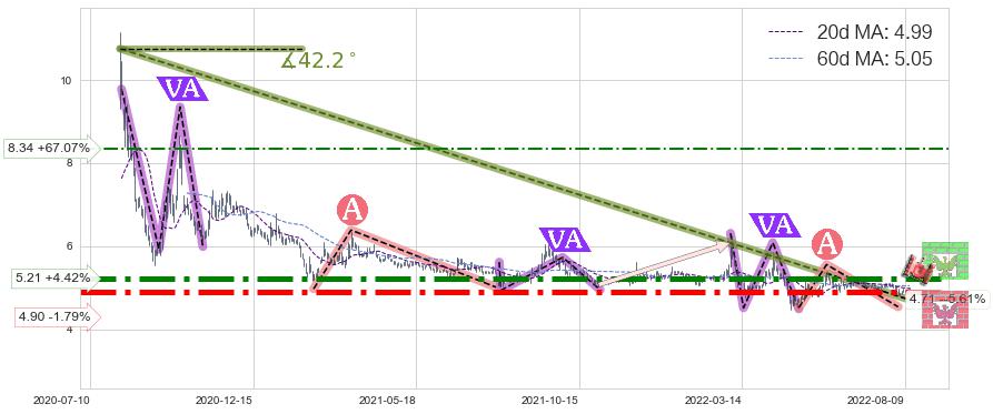 ♘ 阻力价格位5.21,可信任强度87.57%,距离最后交易2022-08-12形成的收盘价格4.99相差 +4.42%