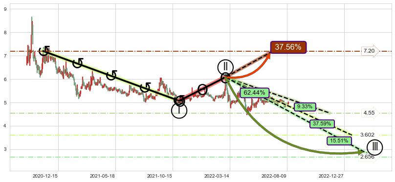 ➣ 循环浪继续向下【平均值】位置(2023-01-16, 3.602),匹配聚类样本比例60.21%, 可能性概率37.59%