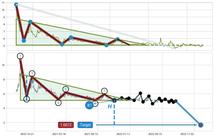 ➣ AI预测: 假定反转启动后, 第❶目标位置(2023-01-23, 5.60)