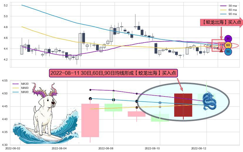⚀ 2022-08-11日显现 30日-60日-90日均线 【蛟龙出海】买入点 看多信号,后市看涨,买入