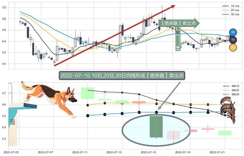 ⚀ 2022-07-15日显现 10日-20日-30日均线 【绝命跳】卖出点 看空信号,后市看跌,卖出
