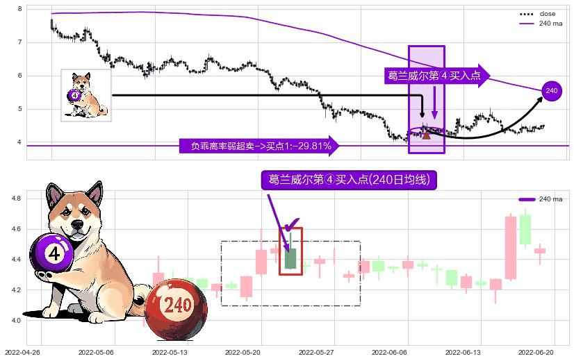⚀ 2022-05-24-日显现 葛兰威尔均线 240日均线 第④买入点 下降趋势均值回复的短线反弹信号,后市看涨,买进信号