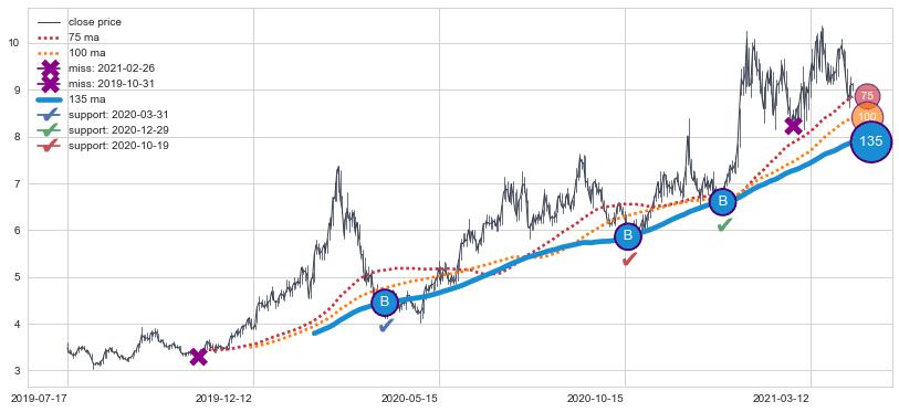 ➢ 发现最优均线组合: 75 , 100 , 135
