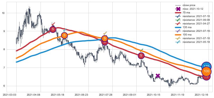 ⚀ 2021-12-21日-2022-06-09日显现 30日-60日-90日均线 【高山滑雪】买入点 看多信号,后市看涨,买入