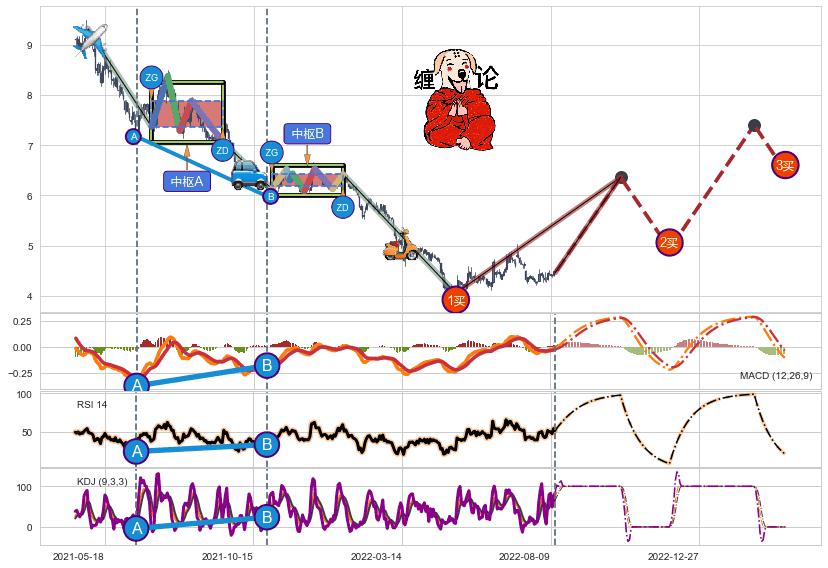| 8 🅚:【高山滑雪】买入点 ➕ ☯️:缠论买卖点下降缠中枢AB形成后猜想拐点1买已到达,猜想后续持续拉升(均值回复) ☞ 看多信号 ⇥ 【均线】交织【图形】⇥ 综合量化分数: 65 | > |