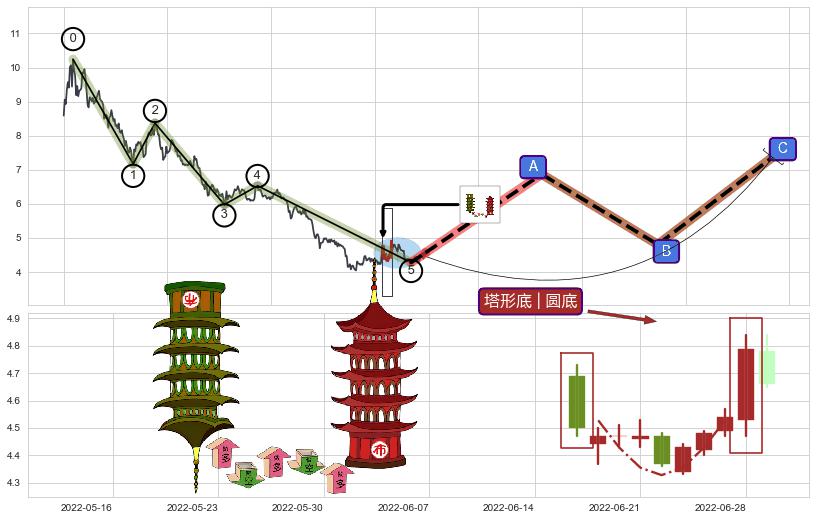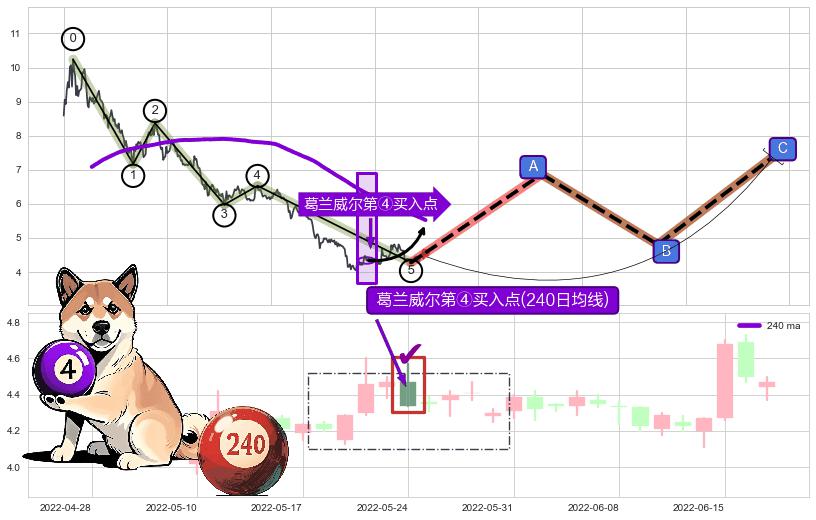 ➣ 收盘价(2022-07-12: 4.64 )→回踩→第一根k线高点(2022-07-06: 4.73 )