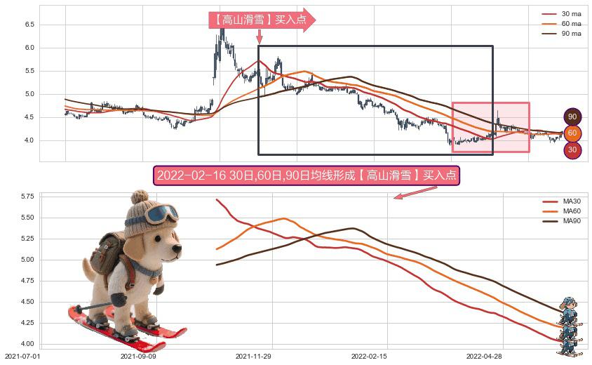 ⚀ 2021-10-26日-2022-06-09日显现 30日-60日-90日均线 【高山滑雪】买入点 看多信号,后市看涨,买入