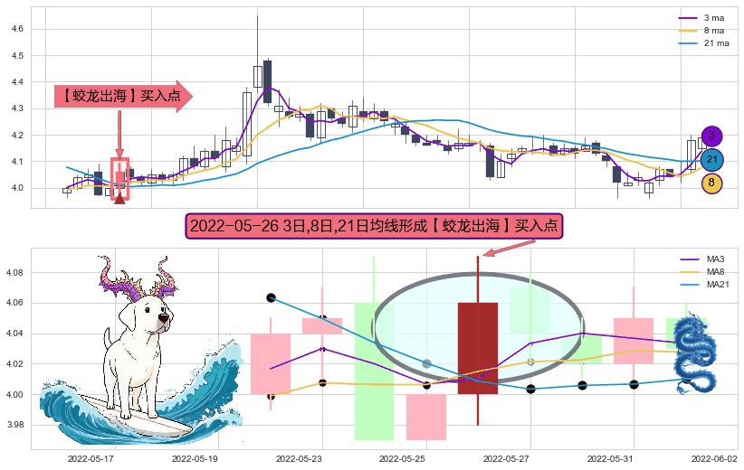⚀ 2022-05-26日显现 3日-8日-21日均线 【蛟龙出海】买入点 看多信号,后市看涨,买入