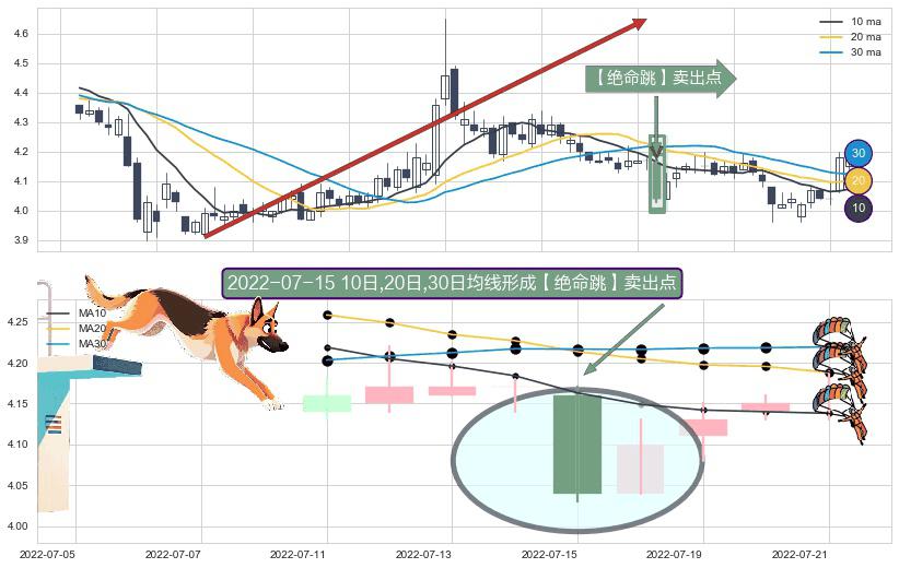 ⚀ 2022-07-15日显现 10日-20日-30日均线 【绝命跳】卖出点 看空信号,后市看跌,卖出