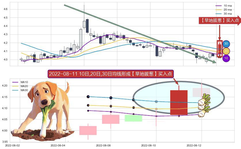 ⚀ 2022-08-11日显现 10日-20日-30日均线 【旱地拔葱】买入点 看多信号,后市看涨,买入