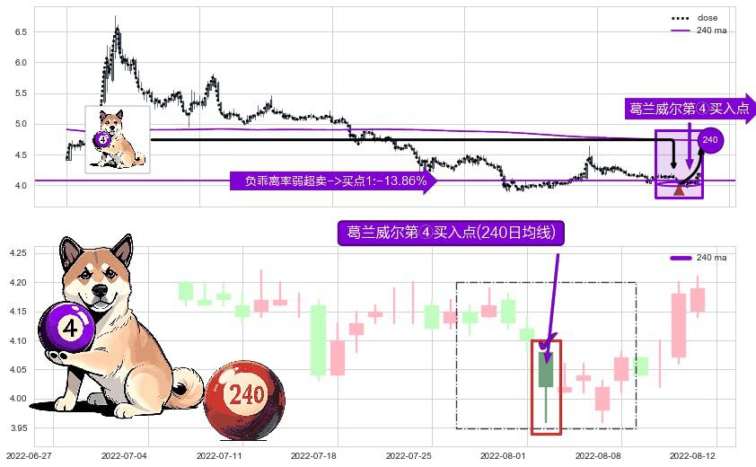 ⚀ 2022-08-02-日显现 葛兰威尔均线 240日均线 第④买入点 下降趋势均值回复的短线反弹信号,后市看涨,买进信号