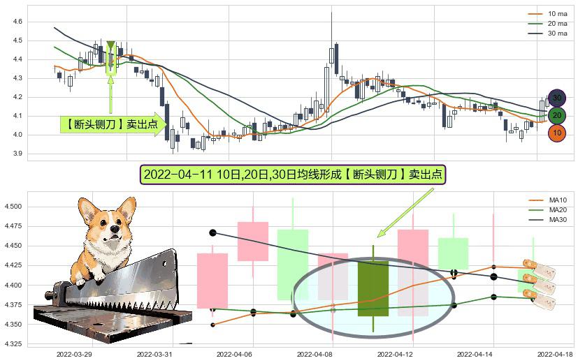 ⚀ 2022-04-11日显现 10日-20日-30日均线 【断头铡刀】卖出点 看空信号,后市看跌,卖出