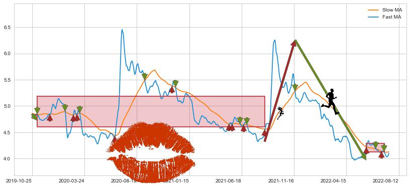 2021-11-18至2022-06-14 慢线与快线呈空头排列, 慢线与快线接触少,无缠绕