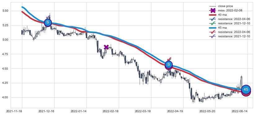 ➢ 最优均线组合共正确确认支撑阻力信号2处,正确确认率 66.67%