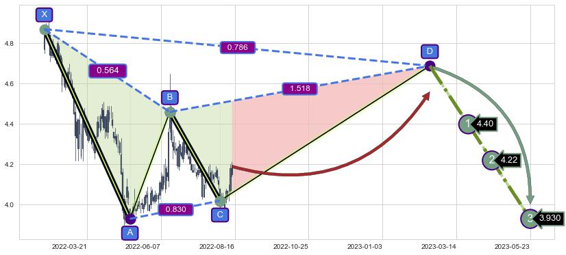 ➣ 未完成【伽利】形态起点X: 2022-02-08, 已到达C点: 2022-08-02, 预测最终D点: 2023-02-16, 共262交易日