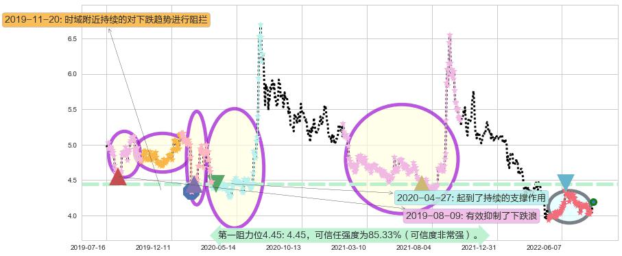 ♞ 第一阻力位4.45价格为4.45,其通过量化计算出的可信任强度为85.33%(可信度非常强)。