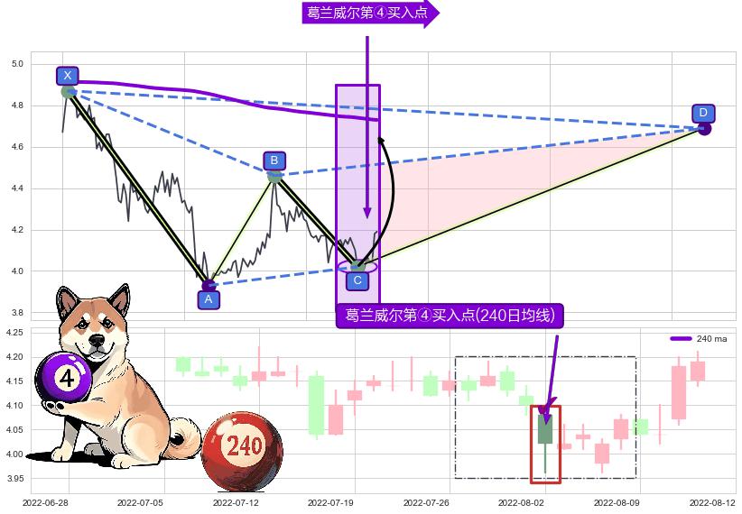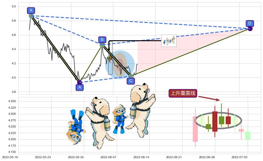 ➣ D点拟合预测价格4.69,距离最后交易收盘价格4.19相差 +11.89%