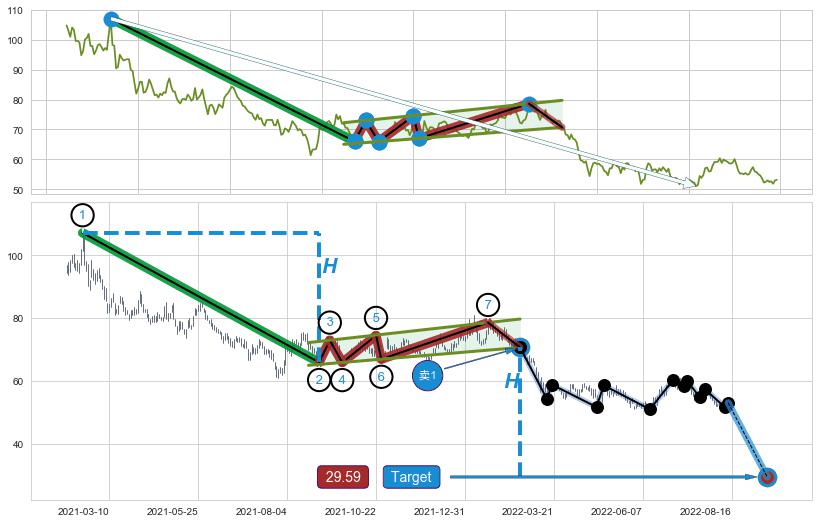 ➣ 最小中继整理跌幅→𝐇: 41.13 (𝐇旗杆的长度:旗杆起点→顶点)