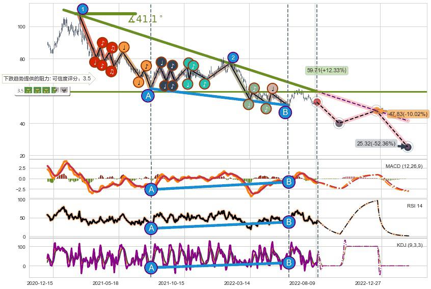 ➣ 预测:2022-12-19,【试探阻力】稳定目前下跌趋势的前提下,预测价格:47.83