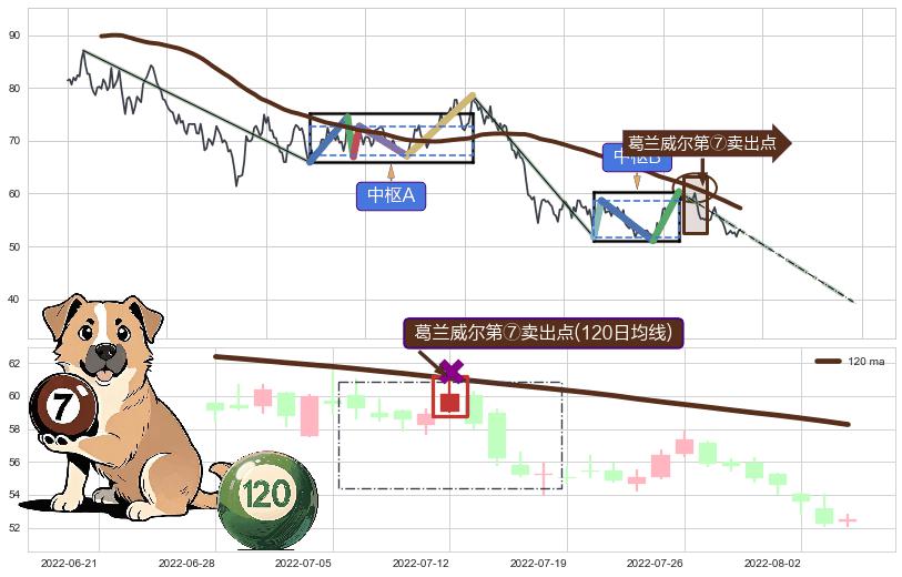 ➢ 【中枢B】:2022-04-26-2022-06-30,中枢由4笔构成,共44交易日, ZG=58.70, ZD=51.79