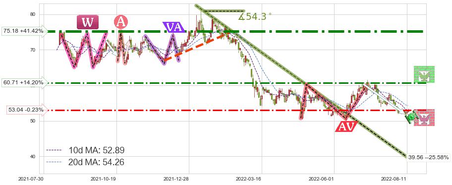 ➢ AI预测: 假定反转如期而至,第❶价格目标位置(2022-08-19, 55.10)