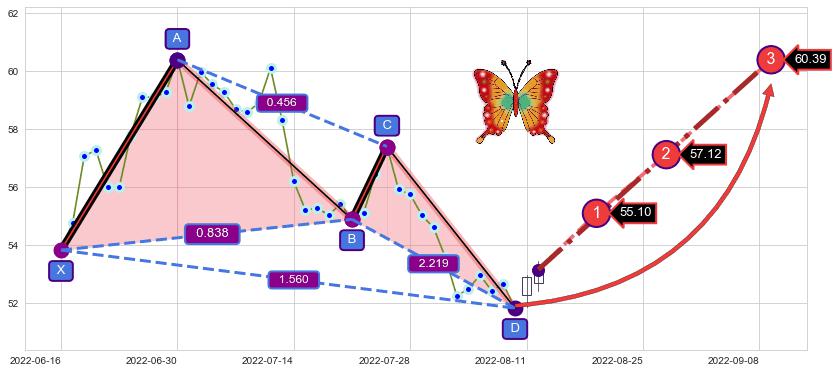 ➣ 已完成【蝴蝶】形态起点X: 2022-06-16, 终点D: 2022-08-10, 共40交易日