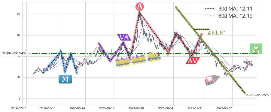 ♘ 阻力价格位15.66,可信任强度59.17%,距离最后交易2022-08-12形成的收盘价格11.96相差 +30.94%