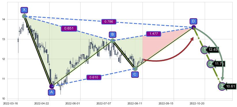 ➣ 未完成【伽利】形态起点X: 2022-03-23, 已到达C点: 2022-08-03, 预测最终D点: 2022-10-07, 共136交易日