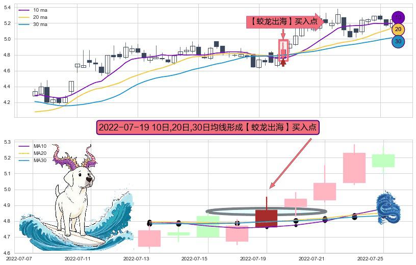 形态多维评估: ⚀ 2022-07-19日显现 10日-20日-30日均线 【蛟龙出海】买入点 看多信号,后市看涨,买入