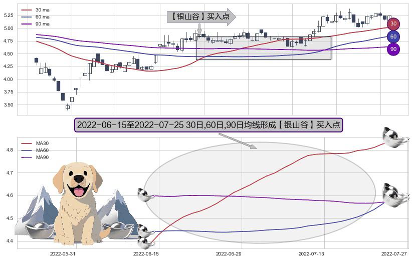 形态多维评估: ⚀ 2022-06-16-日至2022-07-25-日显现 30日-60日-90日均线 【银山谷】买入点 看多信号,后市看涨,买入