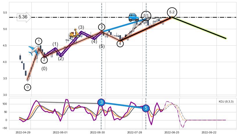 ➣ 5.2: 预测第5浪最终位置(2022-08-19, 5.36)