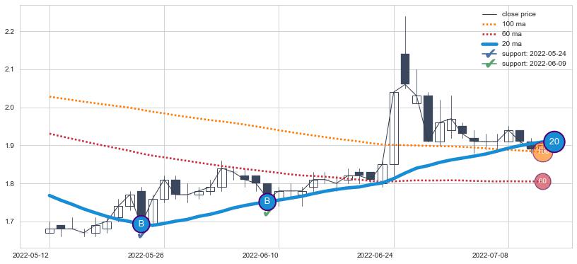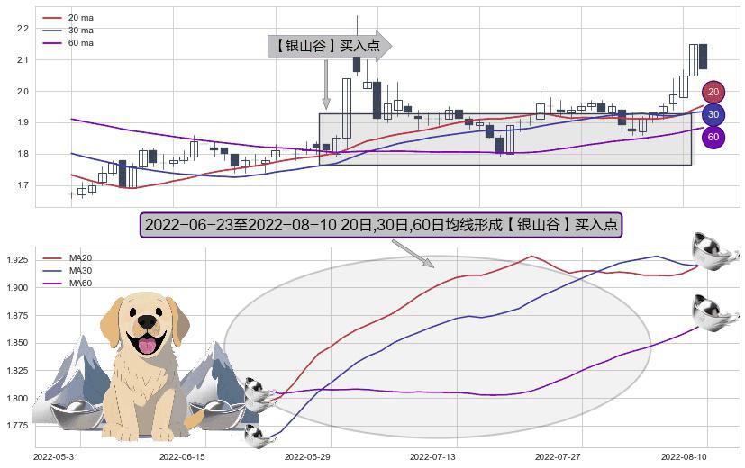 ⚀ 2022-06-24-日至2022-08-10-日显现 20日-30日-60日均线 【银山谷】买入点 看多信号,后市看涨,买入