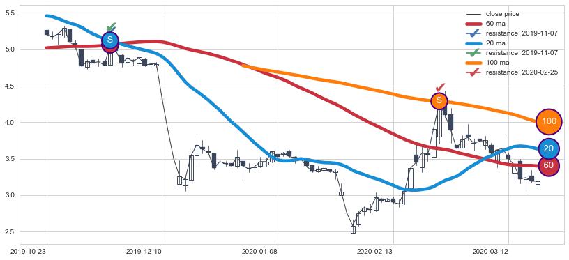 ➢ 最优均线组合共正确确认支撑阻力信号7处,正确确认率 70.00%