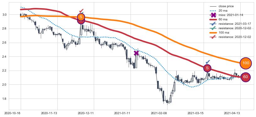 ⚃ 在突破点附近ma走势稍微出现走平迹象,但ma上翘迹象稍稍滞后,信号【可信度中等偏下】