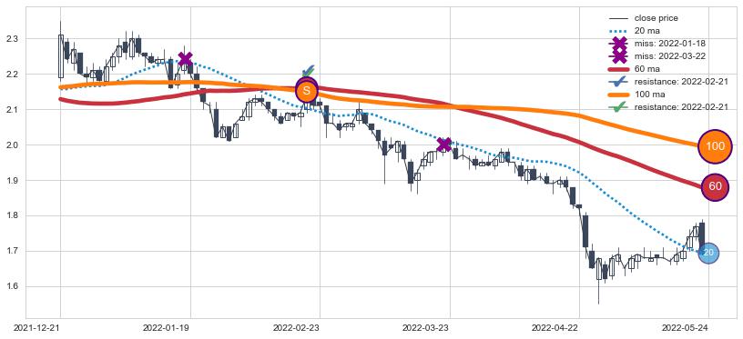 ⚀ 2022-01-20日-2022-06-09日显现 30日-60日-90日均线 【高山滑雪】买入点 看多信号,后市看涨,买入
