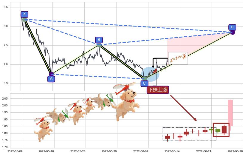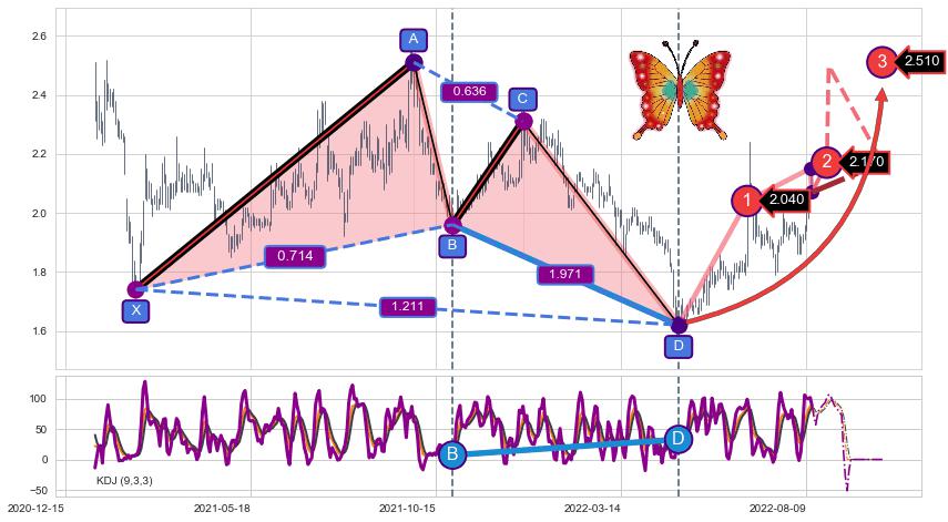 ➣ 已完成【蝴蝶】形态起点X: 2021-02-08, 终点D: 2022-04-28, 共294交易日