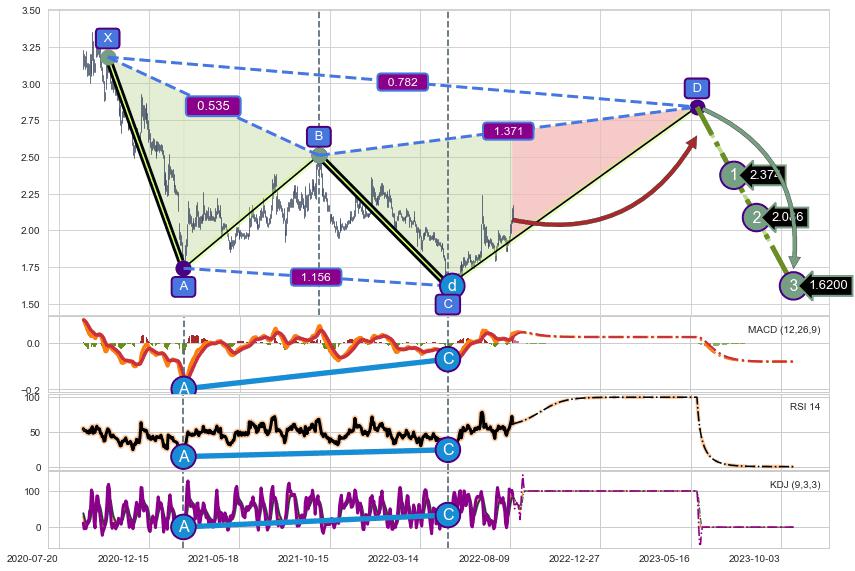 ➣ 未完成【赛福】形态起点X: 2020-10-12, 已到达C点: 2022-04-28, 预测最终D点: 2023-05-25, 共653交易日