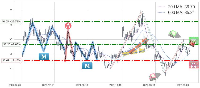 ♘ 阻力价格位38.20,可信任强度68.50%,距离最后交易2022-08-12形成的收盘价格37.20相差 +2.68%