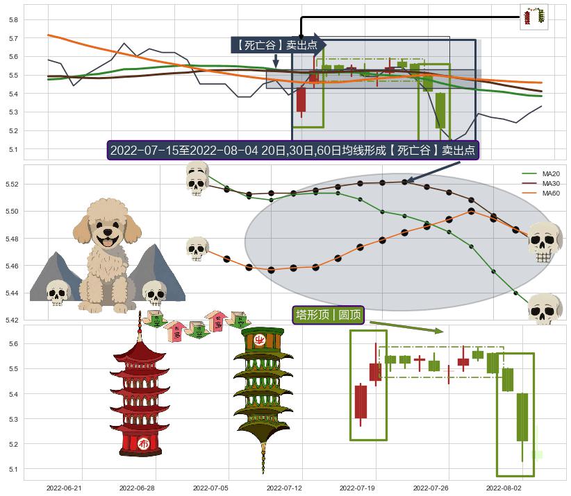 | 8 🅚:塔形顶 | 圆顶 ➕ 🎢:【断头铡刀】卖出点均线组合卖出点信号形成后,猜想后续支撑破位,后市持续下跌 ☞ 看空信号 ⇥ 【均线】交织【🅚线】⇥ 综合量化分数: 49 | > |