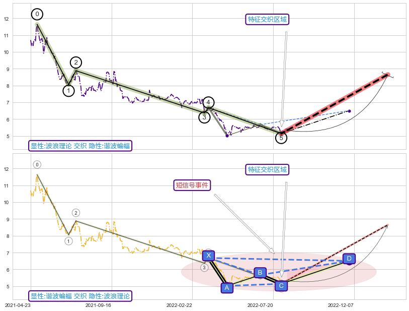 | 14 🅚:上涨螺旋桨形态 ➕ 🌊:波浪理论猜想下跌浪5已形成,猜想后续形成abc反弹上涨(均值回复) ☞ 看多信号 ⇥ 【🅚线】交织【图形】⇥ 综合量化分数: 55 | > |