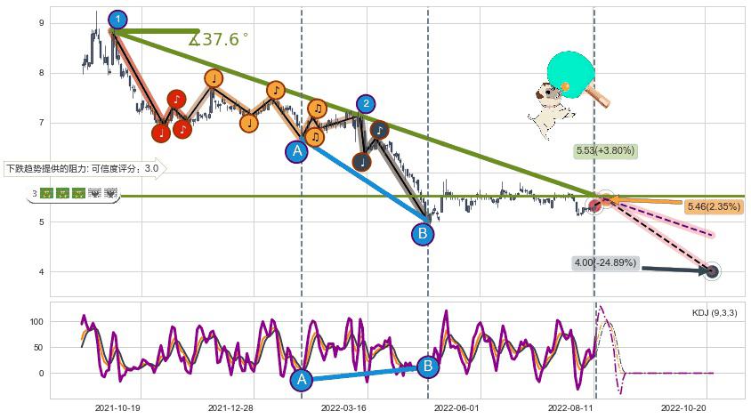 ♘ 阻力价格位5.33,可信任强度70.88%,距离最后交易2022-08-12形成的收盘价格5.33相差 +0.06%