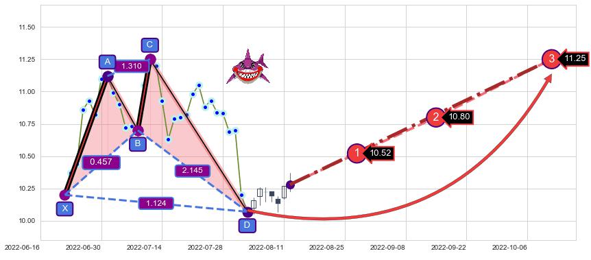 ➣ 已完成【鲨鱼】形态起点X: 2022-06-22, 终点D: 2022-08-03, 共31交易日