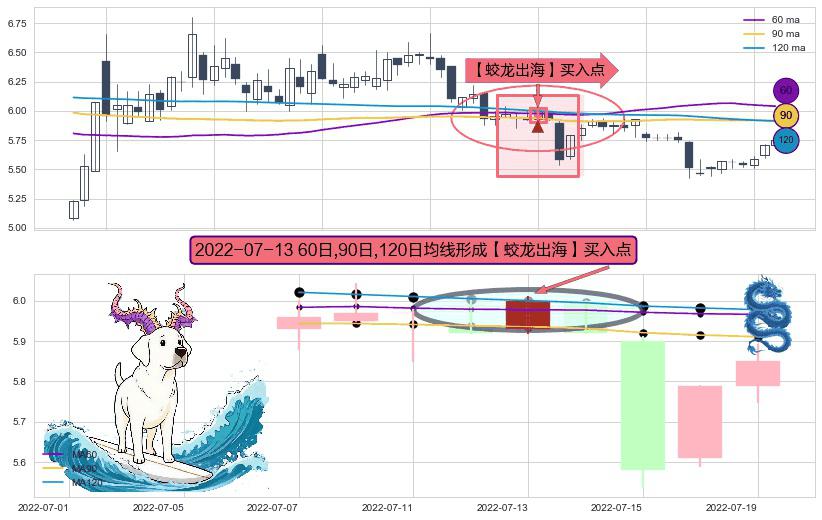 形态多维评估: ⚀ 2022-07-13日显现 60日-90日-120日均线 【蛟龙出海】买入点 看多信号,后市看涨,买入