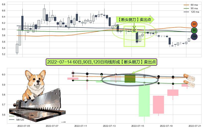形态多维评估: ⚀ 2022-07-14日显现 60日-90日-120日均线 【断头铡刀】卖出点 看空信号,后市看跌,卖出