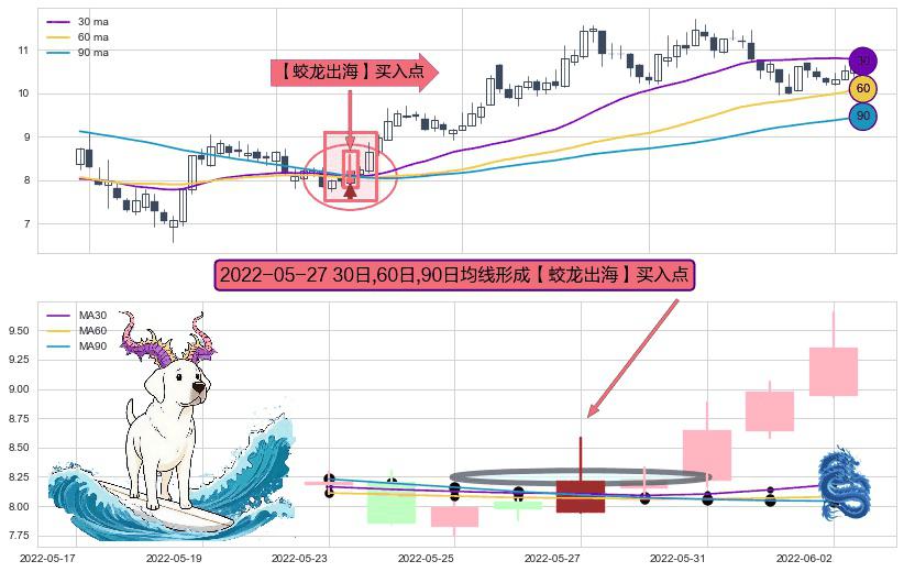 形态多维评估: ⚀ 2022-05-27日显现 30日-60日-90日均线 【蛟龙出海】买入点 看多信号,后市看涨,买入