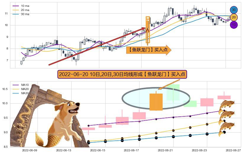 形态多维评估: ⚀ 2022-06-20日显现 10日-20日-30日均线 【鱼跃龙门】买入点 看多信号,后市看涨,买入