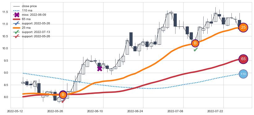 上涨趋势2022-05-12-2022-07-28,均线65, 25确认关键支撑2处