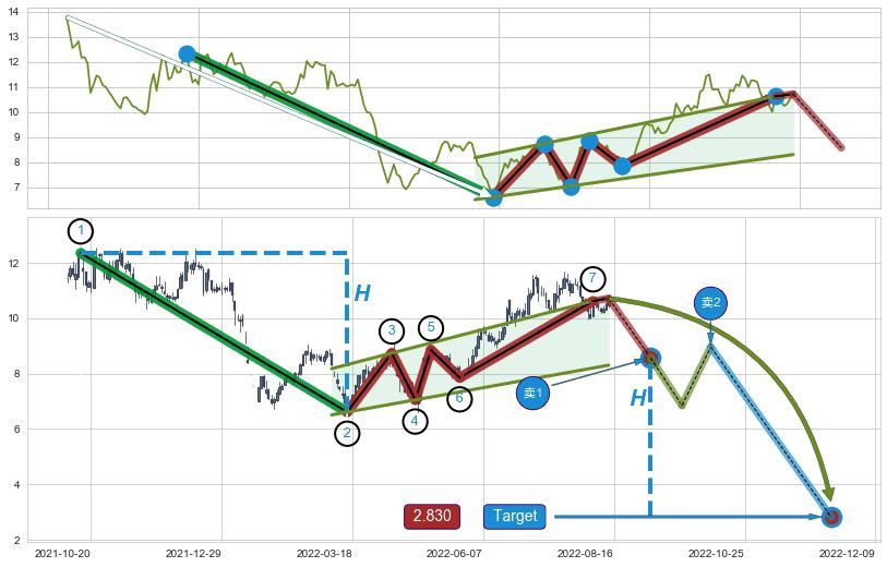 ➢ AI预测: 假定反转如期而至,第❸价格目标位置(2022-10-17, 6.61)